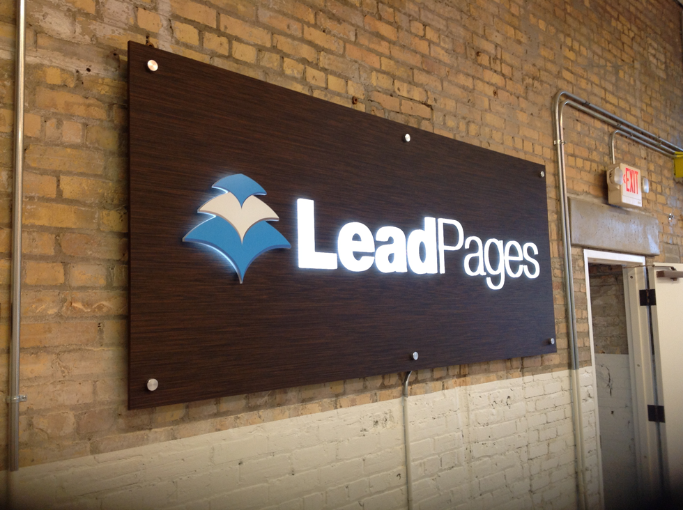 Acrylic dimensional letters with LED backlighting, mounted on Treefrog wood panel and satin puck mounts.
